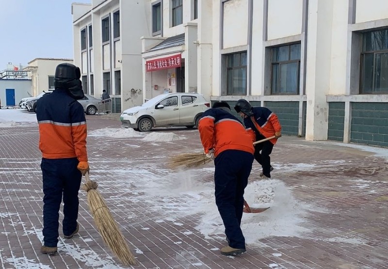 一早,大家分工有序,配合默契,干勁十足,揮舞著掃帚、鐵鍬等除雪工具,你鏟我掃,一派熱火朝天,將雪先掃到一處處集中堆放,再齊心協(xié)力搬運(yùn)至墻角,不給“安全隱患”留機(jī)會。盡管戴著棉帽子,臉卻凍得通紅,但手中的工具卻也絲毫沒有松懈,除雪的身影依舊堅(jiān)定穩(wěn)健。天氣雖冷,勞動(dòng)的熱情卻溫暖了整個(gè)冬日,整潔的工服亦構(gòu)成一道道亮麗的風(fēng)景線。