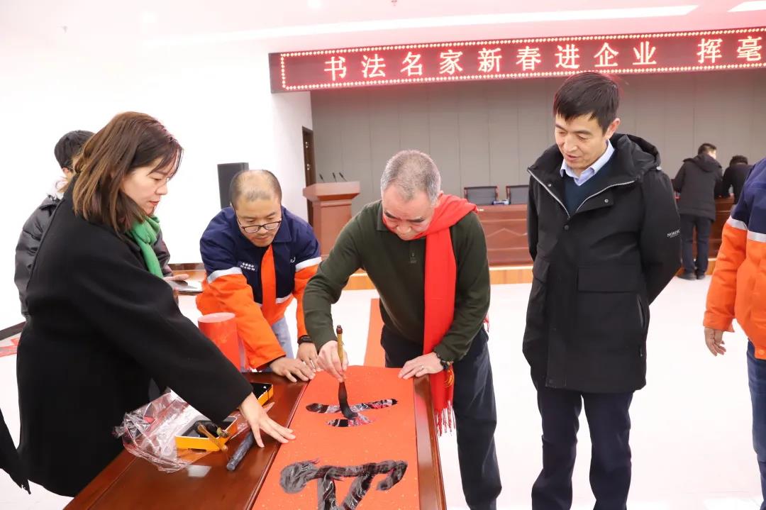 1月26日下午,蘭州新區(qū)美術(shù)家、書法家協(xié)會主席王先銀,副主席王安祥(2021年中國共產(chǎn)黨成立100周年獲得人民藝術(shù)家榮譽(yù)稱號),秘書長魏世全等6名書法名家赴石化集團(tuán)同集團(tuán)黨委副書記、總經(jīng)理姜錦,工會主席劉東斌,副總經(jīng)理李剛,總工程師葉得強(qiáng)一道為公司員工送“?!?、送春聯(lián),提前送上了新春的祝福與問候。