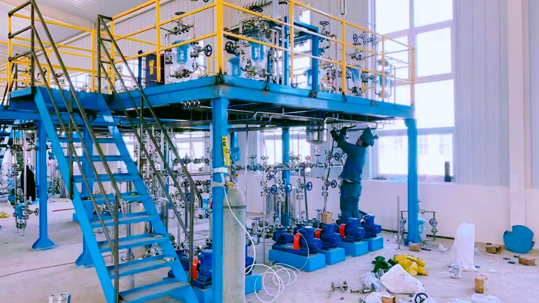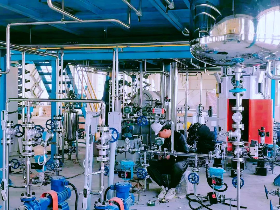 目前,實(shí)訓(xùn)基地裝修工作已完成,16套?;胤N作業(yè)實(shí)操考核裝置框架搭建、設(shè)備布置、管線連接、儀表點(diǎn)及主線槽安裝、分線槽鍍鋅管施工、線槽布線等均已完成,3套化工單元操作裝置框架搭建、設(shè)備布置、管線連接、管道滿焊已完成,已完成安裝總施工進(jìn)度的80%。