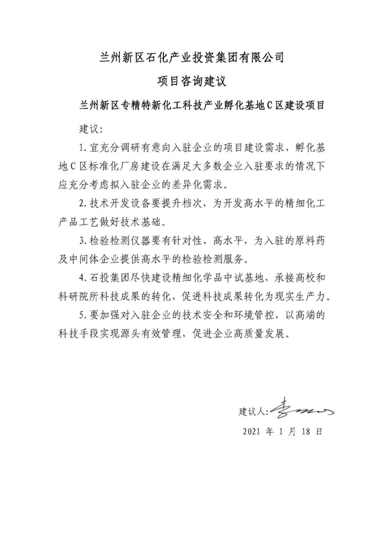 依托院士專家工作站舉辦技術(shù)交流會、研討會、咨詢會等技術(shù)交流活動,李燦院士共為公司2個規(guī)劃建設(shè)項目提供技術(shù)支持,對蘭州新區(qū)化工園區(qū)產(chǎn)業(yè)發(fā)展及蘭州新區(qū)石化產(chǎn)業(yè)投資集團有限公司“十四五規(guī)劃”提出寶貴意見。