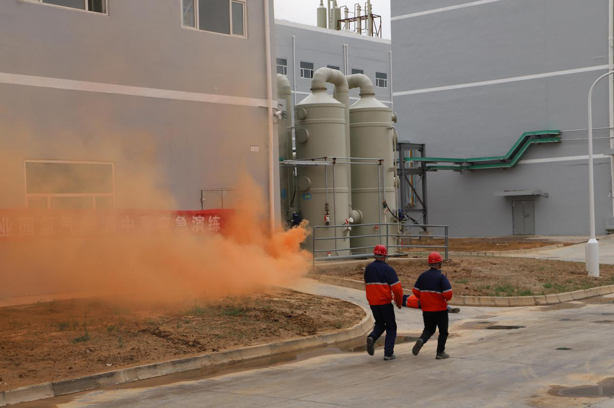 演練模擬場景為2021年6月30日下午14點,26#廠房發(fā)生氯氣泄漏,根據(jù)事故發(fā)展態(tài)勢相繼啟動甘肅藍洲化工科技有限公司應急預案、蘭州新區(qū)專精特新化工科技有限公司應急預案。