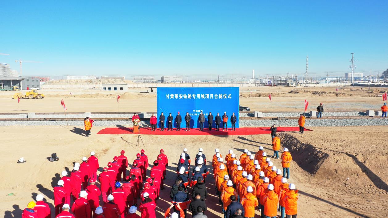 2022年1月19日上午10時(shí),在化工物流園貨場舉行甘肅萊安鐵路專用線項(xiàng)目合攏儀式。蘭州新區(qū)石化集團(tuán)總經(jīng)理姜錦、蘭州新區(qū)商投集團(tuán)總經(jīng)理王堅(jiān)民及中鐵二十一局、甘肅萊安能源有限公司領(lǐng)導(dǎo)出席儀式。