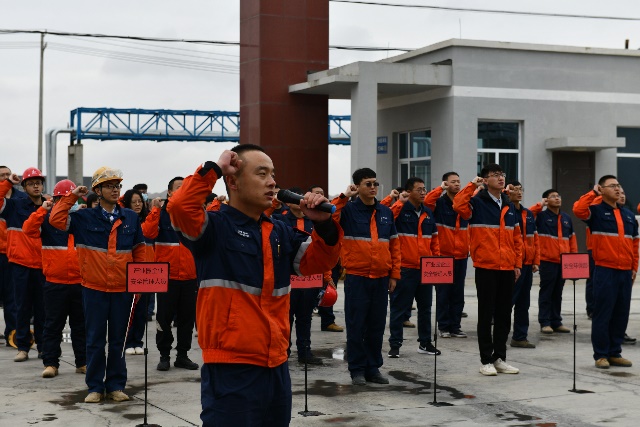 4月15日,專精特新公司舉行了“企業(yè)安全發(fā)展,人民健康幸福”的宣誓活動,為產(chǎn)業(yè)園評選的第一季度三家先進(jìn)單位及三名優(yōu)秀專職安全管理人員頒獎。石化集團(tuán)副總經(jīng)理齊鐵盾同志,副總經(jīng)理、總工程師葉得強(qiáng)同志出席活動并分別進(jìn)行了點評總結(jié)。