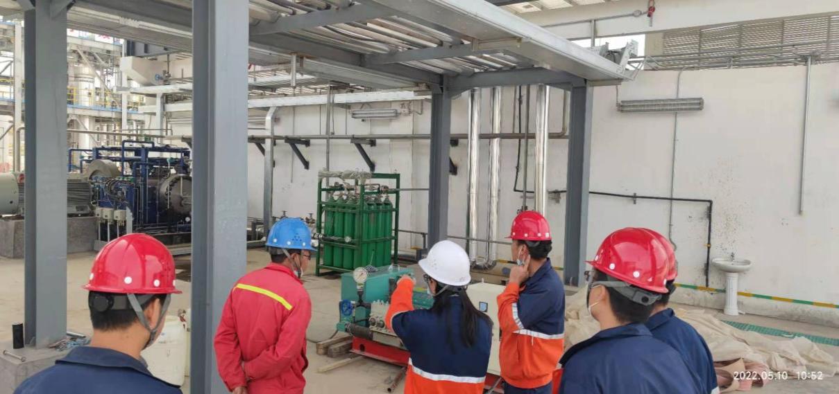 2022年5月10日,液態(tài)太陽(yáng)合成示范工程電解水制氫裝置氣體純化項(xiàng)目(以下簡(jiǎn)稱純化項(xiàng)目)高壓管線試壓工作已順利完成,助推純化項(xiàng)目更快投入使用。