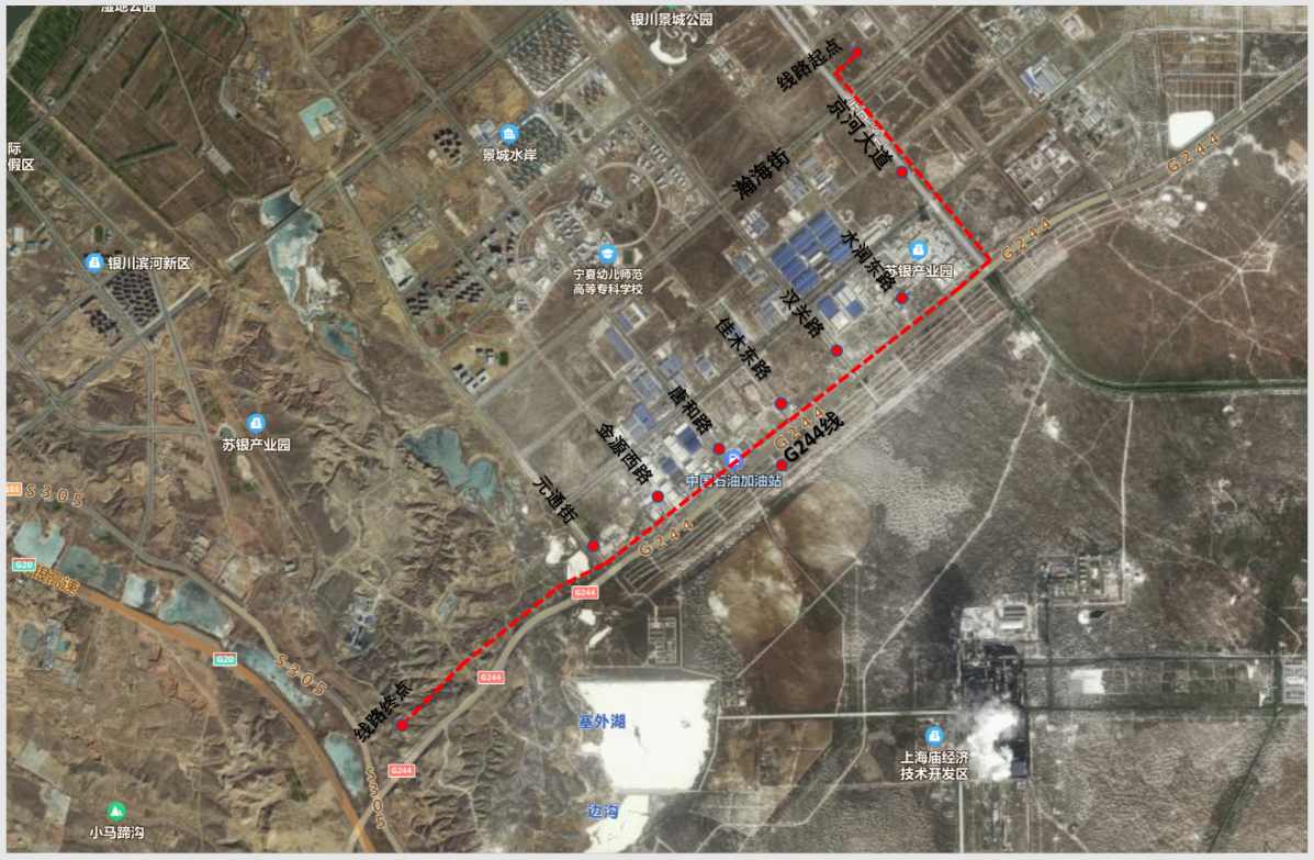 該項目本位于寧夏回族自治區(qū)銀川市興慶區(qū)濱河新區(qū),項目起點位于寧夏寶豐能源區(qū)A區(qū)西南角,沿京河大道地埋至國道244線,沿線途徑水潤東路、漢關(guān)路、佳木東路、唐和路、金源西路、元通街,終點位于水洞溝隧道北側(cè),明長城西側(cè),線路總長為8.4Km。主要結(jié)構(gòu)形式為混凝土支架、鋼桁架、地埋過路形式。