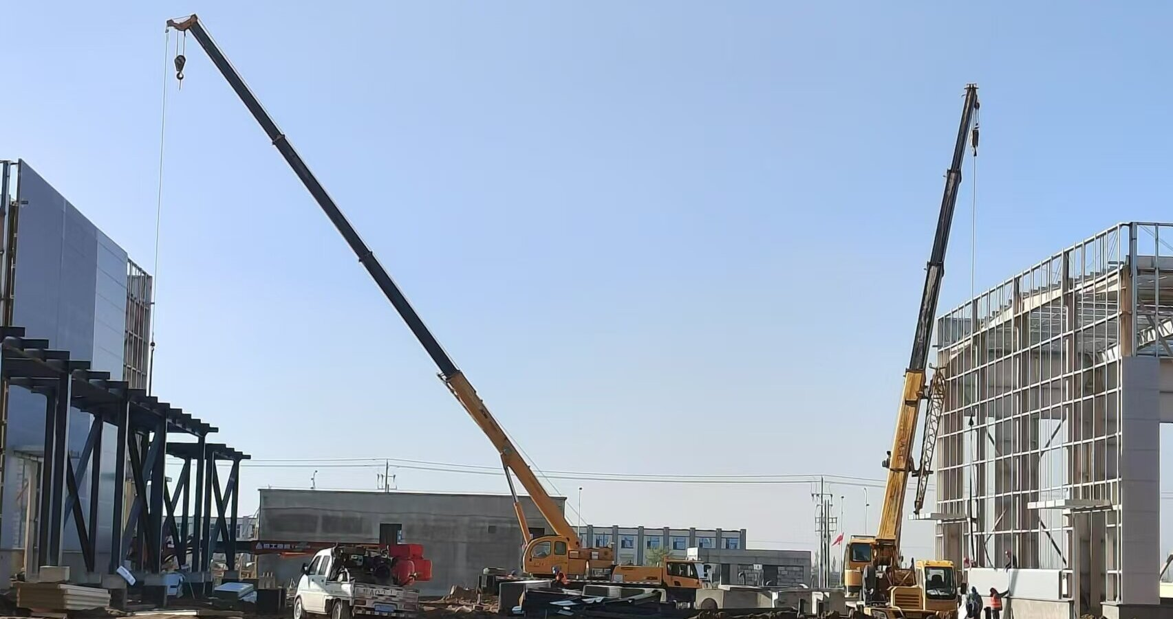 在專精特新D區(qū)項(xiàng)目施工現(xiàn)場,工人們正按照施工進(jìn)度計(jì)劃有條不紊地完成各項(xiàng)施工任務(wù)。切割機(jī)與彩板的摩擦聲,鐵錘與腳手架的敲打聲,搭配各種大型施工機(jī)械轟鳴聲,合奏出一曲祝福祖國生日快樂的贊歌。