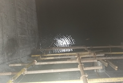 閉水試驗(yàn)是池體施工質(zhì)量總體檢驗(yàn)的必要環(huán)節(jié)之一。為加快推進(jìn)項(xiàng)目建設(shè)進(jìn)度,石投集團(tuán)博石環(huán)保有限公司與施工單位中鐵二十一局積極溝通,明確施工方案,確定實(shí)驗(yàn)日期,要求中鐵二十一局嚴(yán)格按照施工計(jì)劃執(zhí)行,并指定專人負(fù)責(zé),從管道施工、池底平整、腳手架拆除、廢料清除、預(yù)埋管口及進(jìn)出口的臨時(shí)封堵、輸水管道的敷設(shè)等環(huán)節(jié)層層把控,督促中鐵二十一局做好閉水試驗(yàn)前的各項(xiàng)準(zhǔn)備工作。在閉水實(shí)驗(yàn)過(guò)程中,博石環(huán)保公司要求中鐵二十一局隨時(shí)對(duì)池體進(jìn)行外觀檢查,觀測(cè)底板、池壁是否漏水,發(fā)現(xiàn)滲漏點(diǎn)要做好標(biāo)記并及時(shí)處理解決。經(jīng)過(guò)連續(xù)三天的持續(xù)觀察和記錄后,若無(wú)滲漏才可逐步排水。
