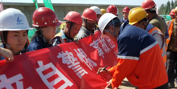 活動中,博石環(huán)保公司組織全體職工及施工監(jiān)理單位工作人員在宣傳條幅上簽字,對工作中履行的安全生產(chǎn)職責(zé)作出承諾。博石環(huán)保公司總經(jīng)理朱伯麟結(jié)合今年“消除事故隱患,筑牢安全防線”的安全生產(chǎn)月活動主題,圍繞“責(zé)任落實、隱患排查、風(fēng)險管控、應(yīng)急處置”等內(nèi)容進行安全宣講。