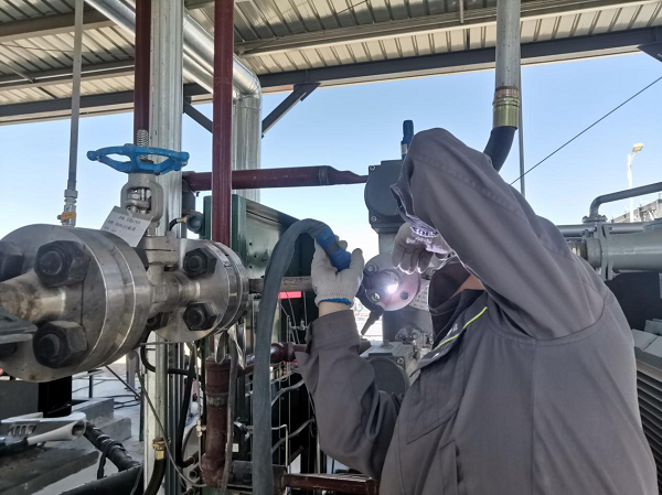 石投集團(tuán)化學(xué)工程公司本著“急業(yè)主所急,想業(yè)主所想”的原則,作業(yè)人員相互協(xié)調(diào)配合,圓滿完成一項又一項工作任務(wù),相繼高效完成了污水處理廠事故池抽水泵管道改造工程、蘭州新區(qū)專精特新化工科技有限公司液態(tài)太陽燃料合成甲醇裝置兩臺隔膜壓縮機(jī)進(jìn)口緩沖罐更換及管線改造工程、電解水制氫車間防護(hù)欄制作安裝等工程,為園區(qū)企業(yè)提供了優(yōu)質(zhì)高效的服務(wù),為園區(qū)建設(shè)添磚加瓦,貢獻(xiàn)自己的全部力量。