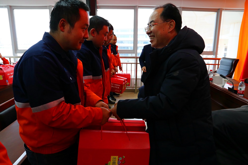 在慰問中,柴守強親切慰問了優(yōu)秀職工代表,并為他們送去了新春的祝福和節(jié)日慰問品。同時,對集團職工堅守崗位、無私奉獻,舍小家為大家,加快化工園區(qū)建設的精神表示肯定,對他們付出的辛勤勞動和作出的貢獻表示感謝,并細心詢問了他們的工作和生活情況,向他們及其家人致以新春的問候和節(jié)日的祝福。